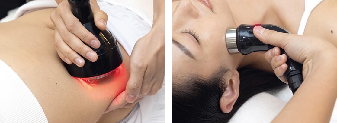 フェイシャル専用の超音波プローブと電床パッドの組み合わせで、ANION超音波によるマルチトリートメントを実現します